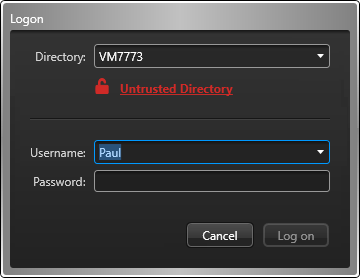 - In the Logon dialog box, enter the name of the Directory.If the Directory is not responding, check the spelling or contact your administrator.